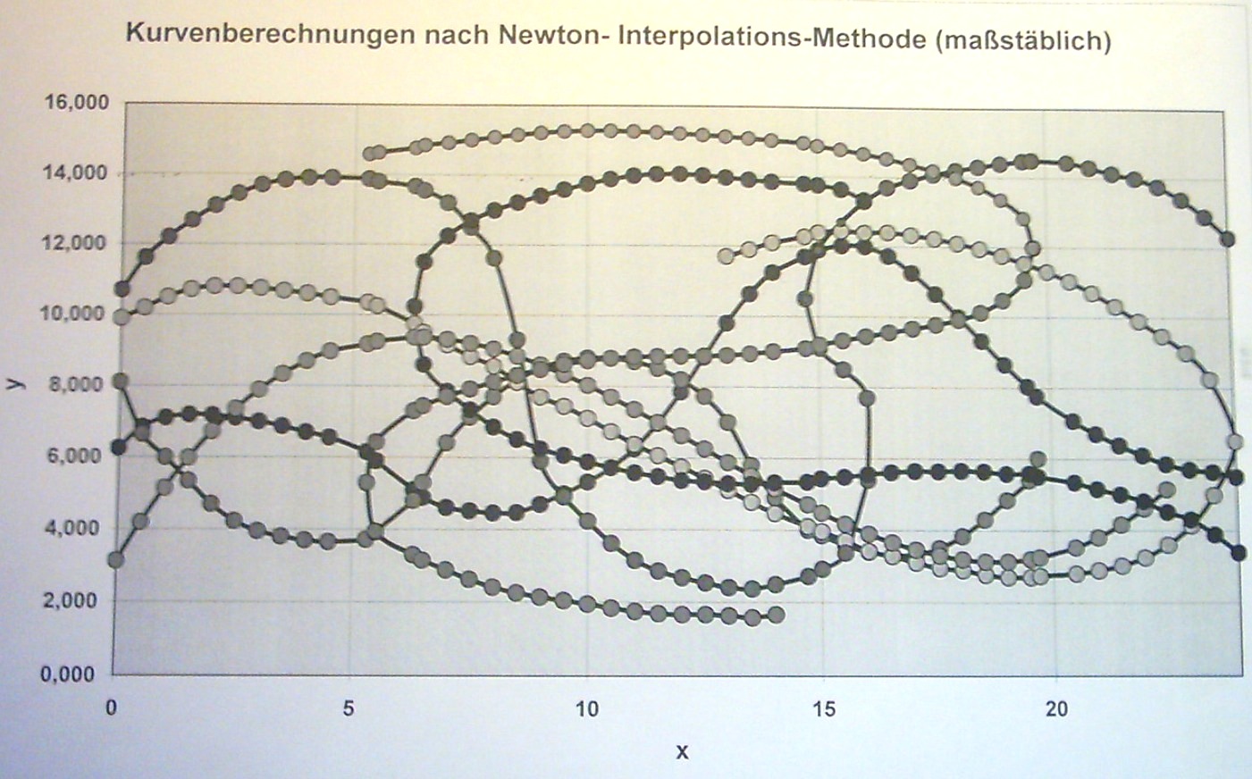 Berechnungen von unbekannten homogenen Kurvenverläufen, die in der Praxis vielfach vorkommen, deren Kurvenkoordinaten ausgemessen werden, sind stets Näherungsberechnungen, wobei gegebenenfalls eine Kurve mit mehreren Kurvennäherungsgleichungen beschrieben werden muss und diese anschließend über Logikfunktionen (mit PC) bzw. Interpolationen zusammengefügt werden müssen.