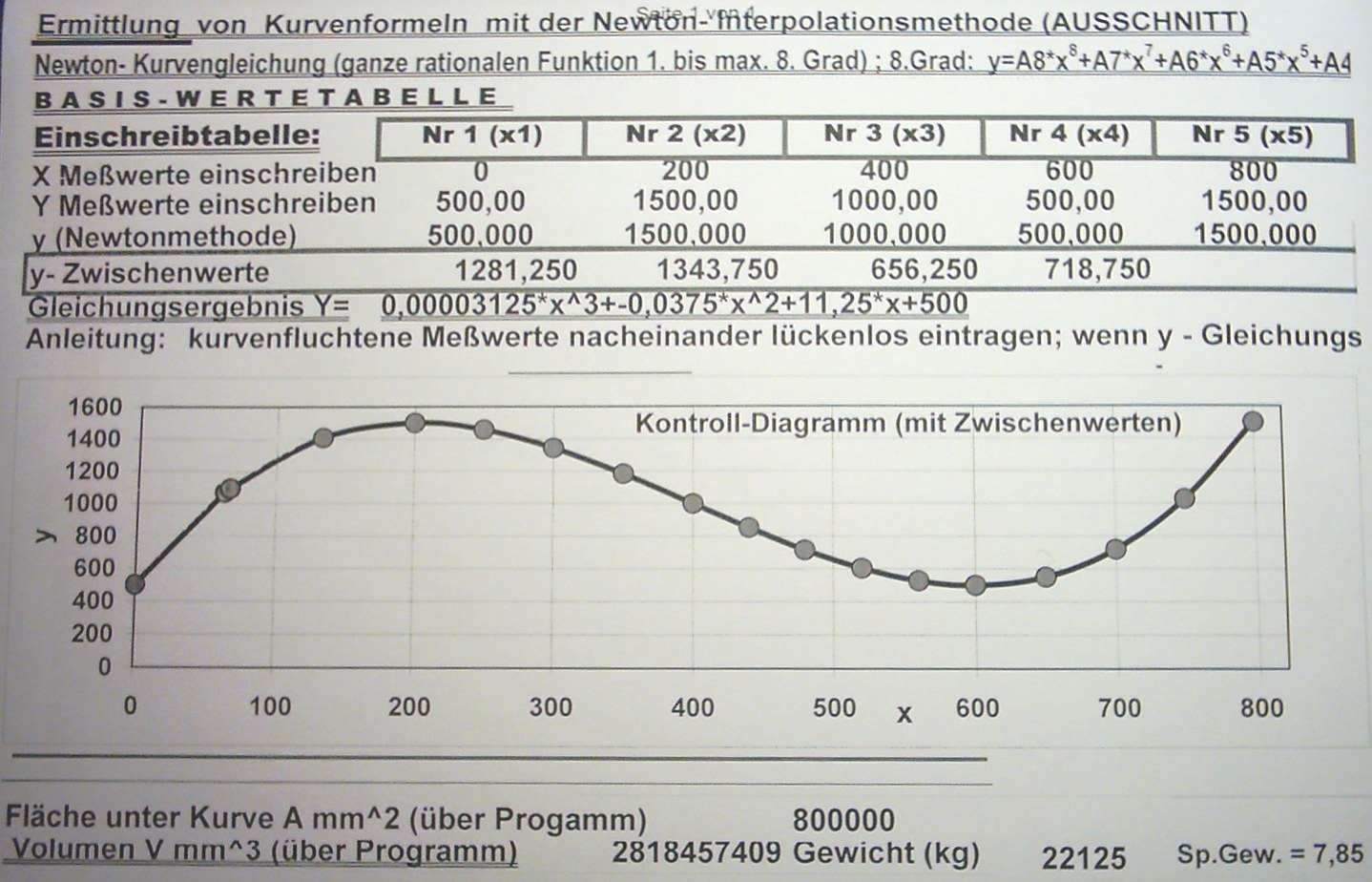 Deshalb habe ich leicht verständliche und leicht nachvollziehbare Gewichts- und Preisberechnungen im Programm "Kurvengleichungen" vorzugsweise behandelt (vom Praktiker für Praktiker).